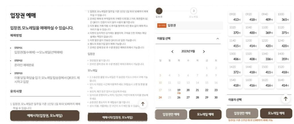 - 취소분이 언제든지 나올수 있기 때문에 관광하며 걷다가 정문과 1승강장 무인발권소, 매표소에서 구매하셔도 되세요.