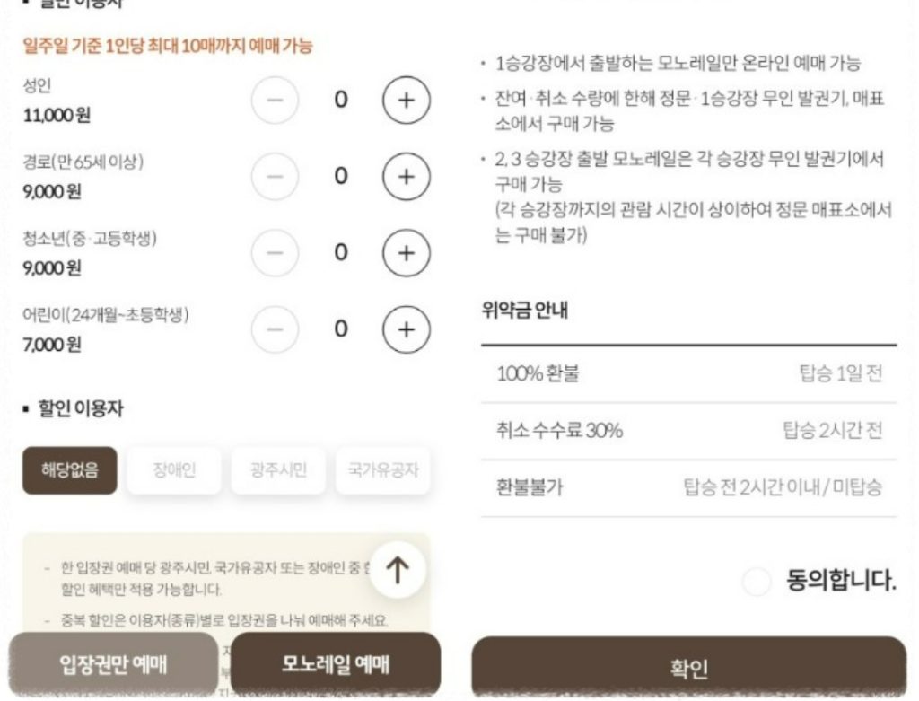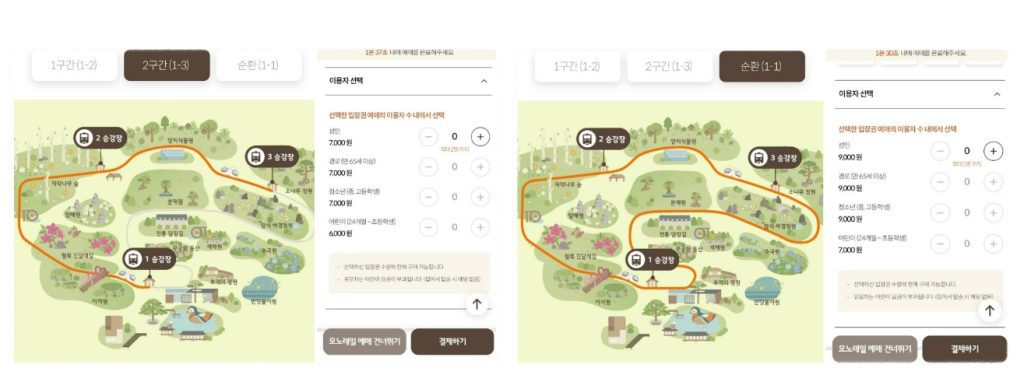 - 성수기(봄, 가을)에는 전 구간이 조기 매진 될 수 있으니, 재차 확인하세요.
