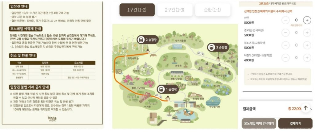 - 온라인으로 화담숲 입장권을 발권 후에 예약 변경을 해야만합니다.